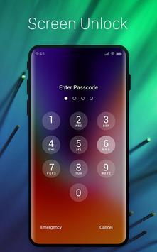 Unique lock screen and password unlock interface; here we have lock theme for íPhone 8 with OS 11 wallpapers.