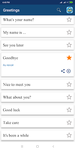 -- each phrase with speech of native speaker help you learn speak French correctly