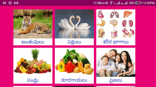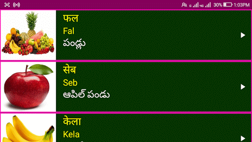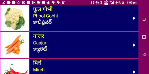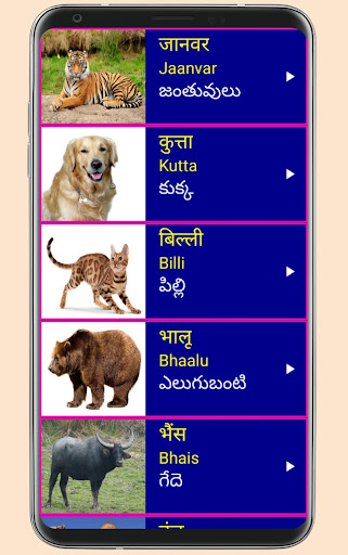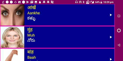 2. Each Hindi word has a clear image 📸🖼️ and audio pronunciation 🎵🔊 to make Learning Hindi via Telugu Easy.