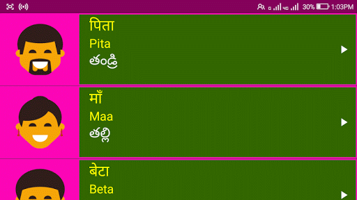 4. Learn Hindi from Telugu app comes with a beautiful app design to make Learning Hindi through Telugu a pleasant experience. 🌈