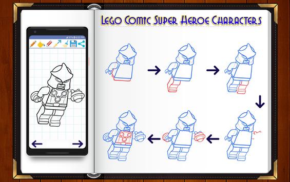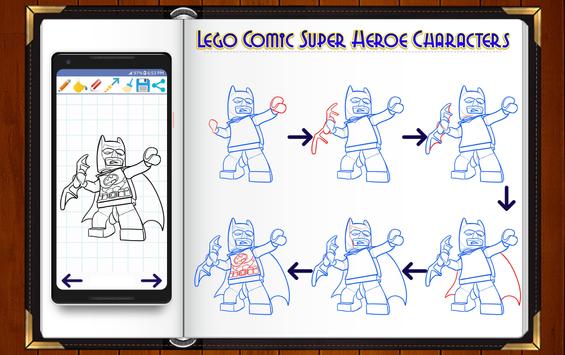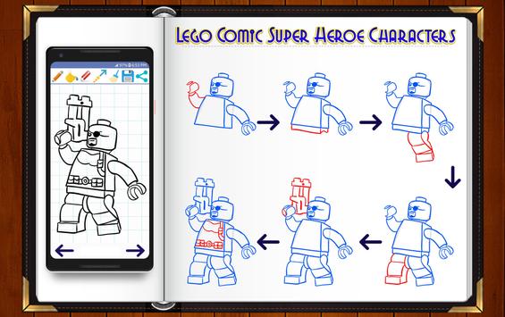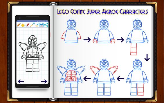 Learn to Draw Lego Comic Superheroes drawing and sketches application for kids will show you how to draw cute chibi super heroes and lego characters drawing with easy to follow and simple step by step drawing instructions. The following tutorial will guide you through the steps with easy geometric shapes, letters, and numbers.