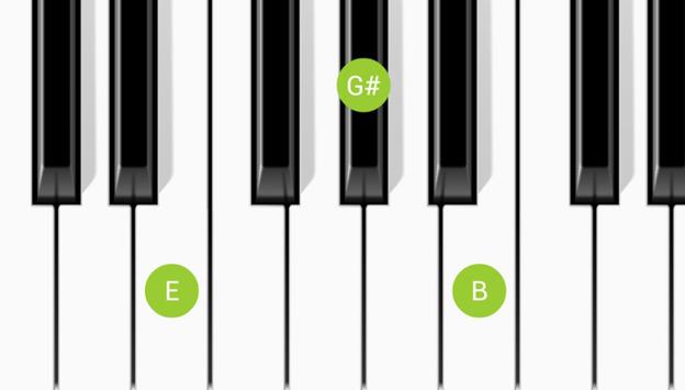 The highlighted keys show you exactly how to play the chord. They keys can also be pressed for audio feedback so you can make sure you're playing it right!