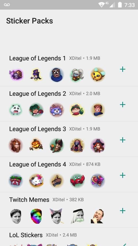 Colección de varios stickers de campeonato y emotes del juego League of Legends para ser usados en las conversaciones de la aplicación.