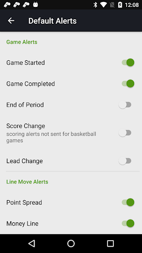 Get alerts for game start, final score, end of period, score changes and line moves.