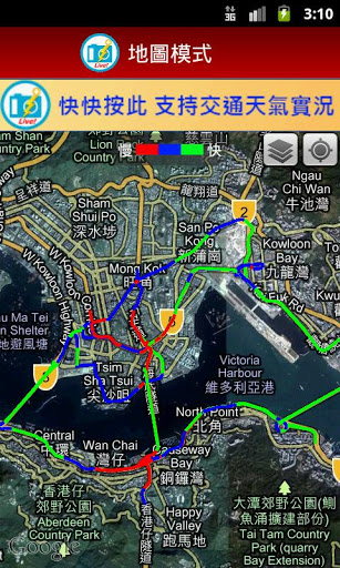 * “Traffic Speed Map” - The traffic speed map provides you with the average traffic speed of the major roads in Hong Kong Island and Kowloon