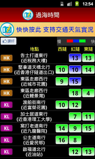 * “Cross-harbour Journey Time” - The journey time indicators provide you with average time for crossing the harbour between Hong Kong Island and Kowloon.