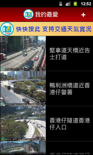 * “Multiple Snapshots” – You can see real-time snapshots of multiple cameras (e.g. both entrances of the Cross Harbour Tunnel) on the same screen at the same time.