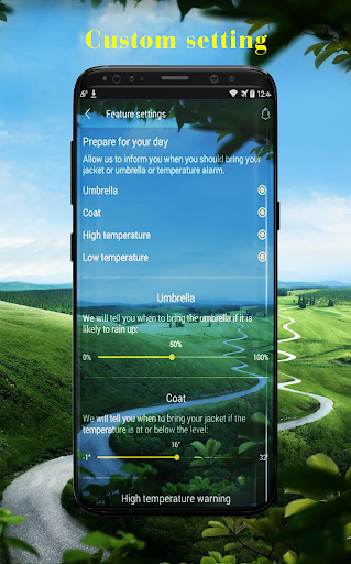 - Change unit setting: Temperature (C/F), Time format (12h/24h), Precipitation (mm, inch), wind speed (km/h, mi/h, m/s), pressure (mmhg, hPa, mbar)