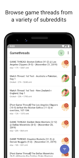 • View gamethreads from /r/nba, /r/nfl, /r/soccer, and more