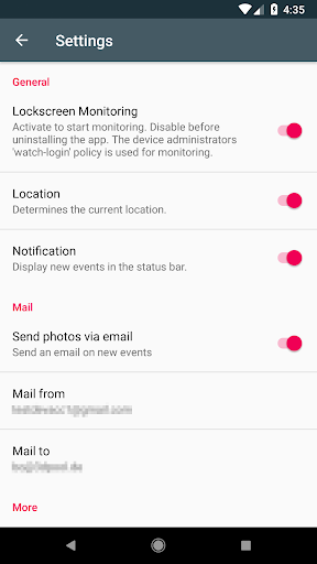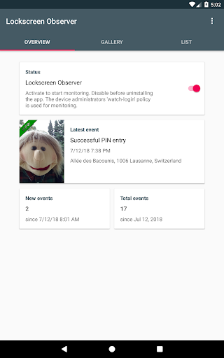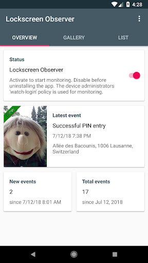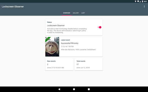 Are you concerned that someone might access your phone without your knowlegde? When you've just briefly left the room, while you're asleep or you lose your phone? Play it safe and find it out! Lockscreen Observer takes a picture with your front camera whenever a wrong PIN code is being entered. Receive the photo and the current location of your device via email.