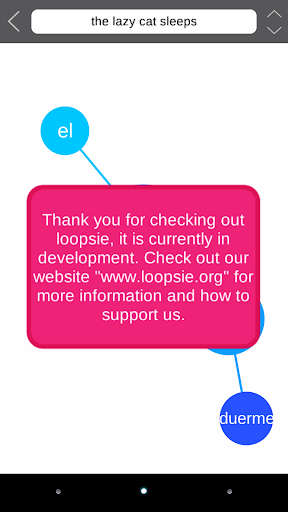 To swap languages, you can tap the arrow in the search bar and loopsie starts the learning process over again in another language. The circles disconnect, leaving you to connect the dots. The colored words stay the same between each language, so it’s easier to pick up on what word you are translating.