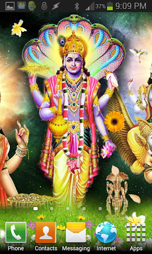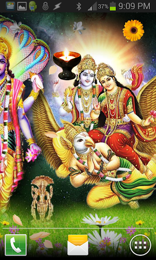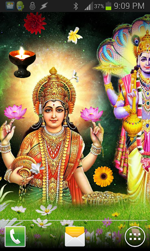 This is a beautiful high quality animated live wallpaper of Lord VISHNU and Maa Laxmi. It features Bhagwan Vishnu and Mata Laxmi with shower of animated flowers and leaves, just touch them on the screen to transform them into flying Diyas.