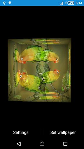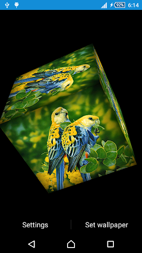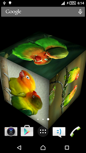 This Love Bird Live Wallpaper features a rotating 3D photo cube showing pictures from selected image.