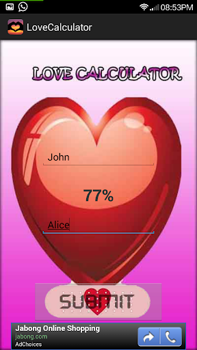 There is a boy at my school and he has a crush on me. His name is Stuart Hayton, I used this game on him and me and it said 89%!!! Oh WOW wish me luck!!!