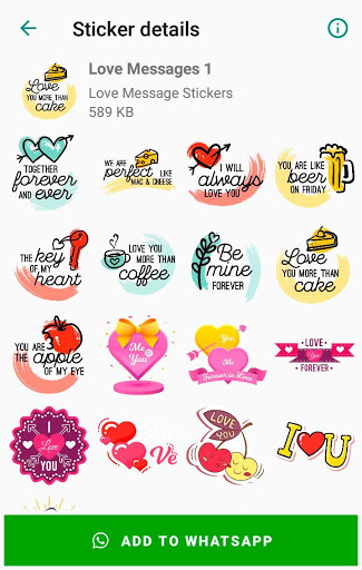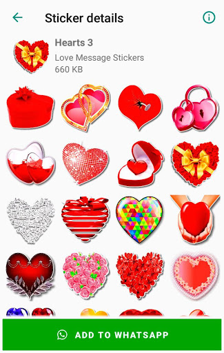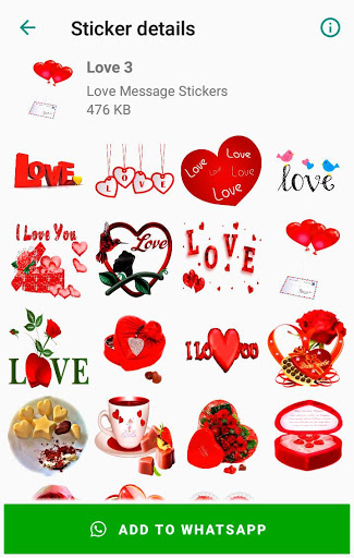 Love Message Stickers is a collection of the best love stickers that can be easily shared with boyfriend/girlfriend on WhatsApp and on social networks.