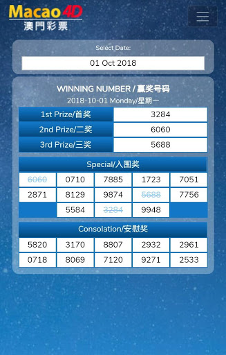 Macao4D live results app.