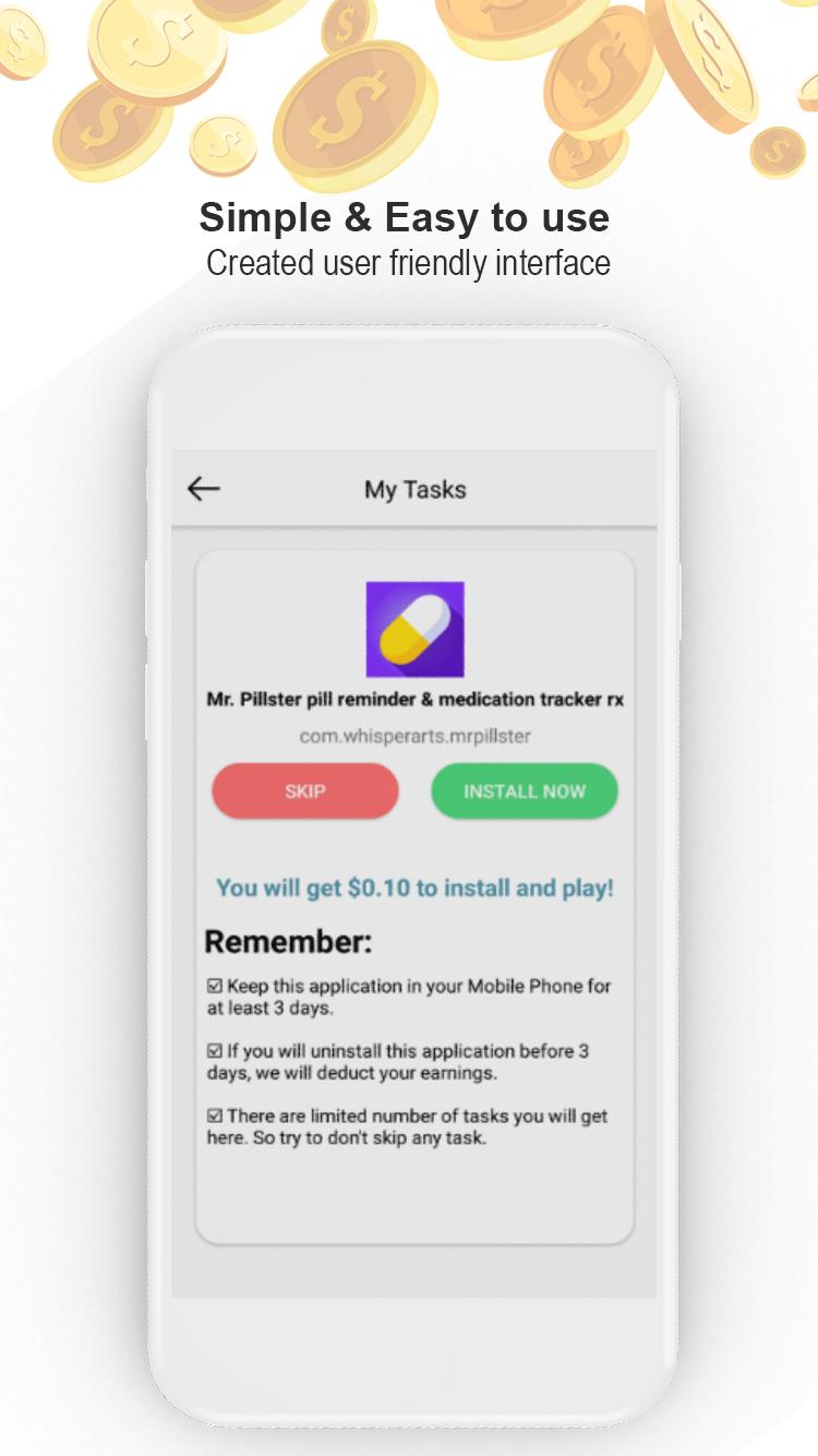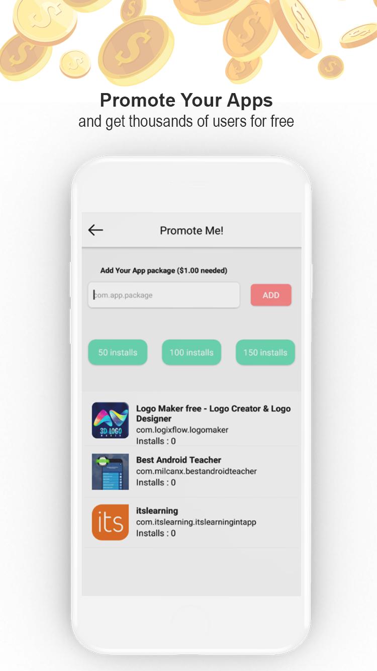2) If you need fast installs, just buy installs from us. You can buy 50,100,150 installs and get points. You dont need to earn money then.