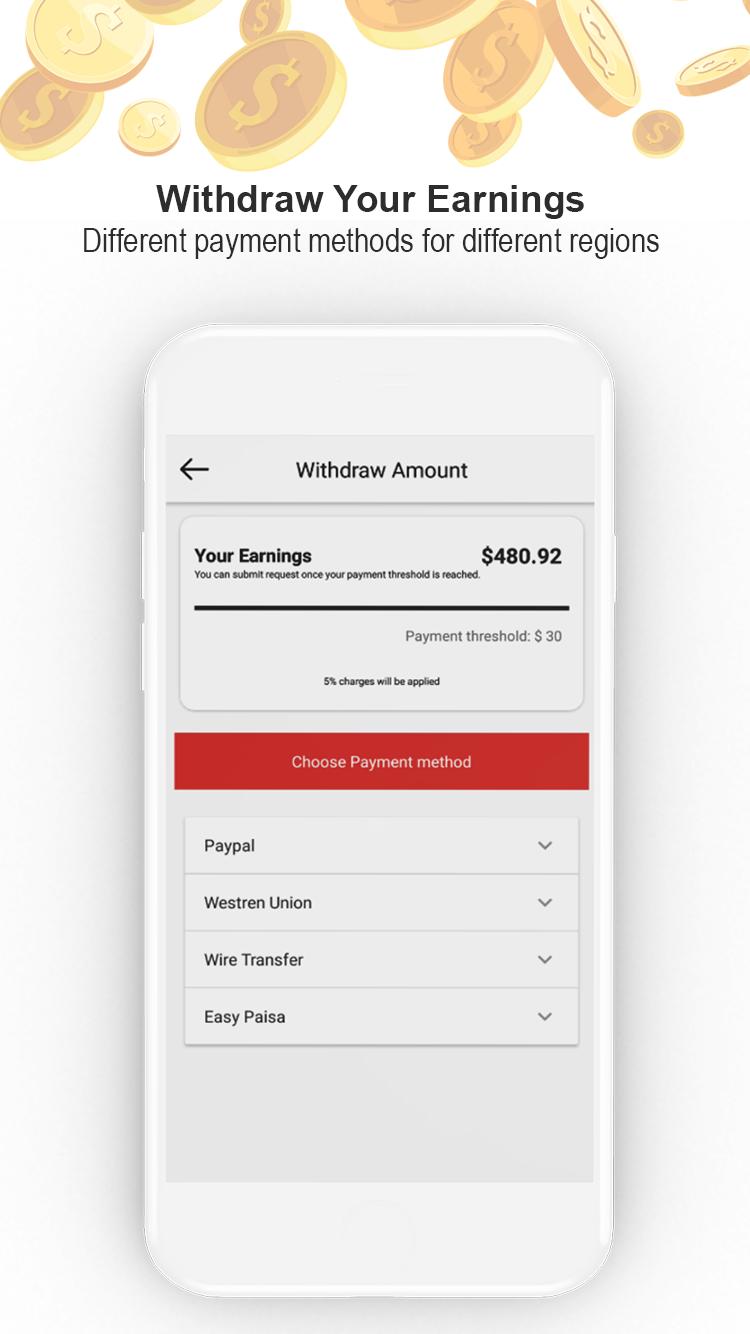 4) Get your earnings by 4 different payment methods. paypal, wire transfer, Westren Union, Easypaisa.