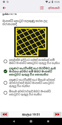 එමෙන්ම රියදුරු බලපත්ර විභාගයට සූදානම් වීමට අවශ්ය සියලුම න්යායායාත්මක ප්රශ්ණ මෙම යෙදුම මගින් ලබා ගත හැකිය. මෝටර් රථ ප්රවාහන දෙපාර්තමේන්තුව මගින් ලබා දෙන සියලුම විභාග ප්රශ්ණ මෙයට ඇතුලත් වේ.
