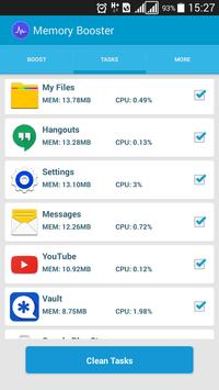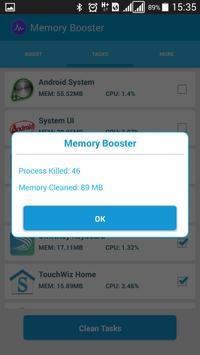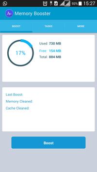 Memory Booster optimizes your device by cleaning cache memory and disabling apps running on the background.