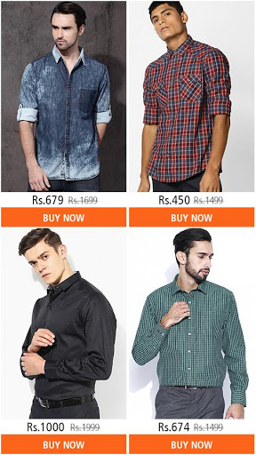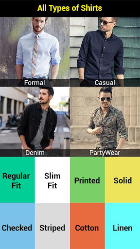 The app brings a line of stylish men shirt designs for occasions ranging from casual, formal & semi-formal to parties. The collection includes branded shirt photos in number of patterns, colors, cuts, fits, collars, styles and fabrics.