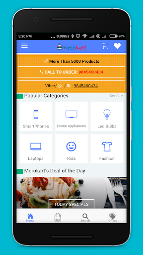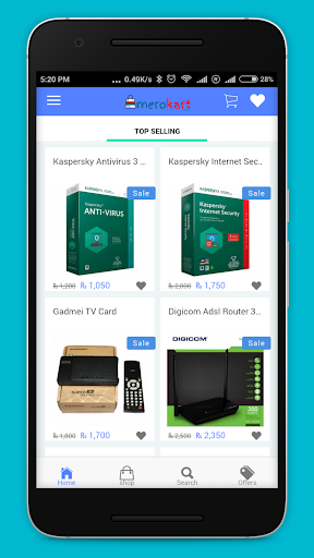 Experience the new way of shopping online with Merokart Android app. Our app allows customers to shop online at best price anytime, anywhere just with your one finger tap. You can also search your favourite and desired products from our app and website merokart.com from wide range of categories. Our app allows user to login with facebook and google , view their past orders with merokart, track order, view and edit billing & shipping address, check products rating, share product on various platforms including social networks, and leave positive product ratings for purchased products. We have Cash on delivery(COD) as payment method which helps to buy products with ease.