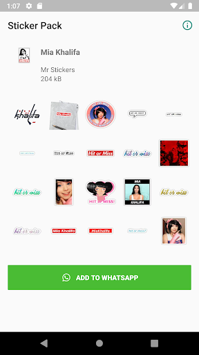Discover the best stickers of mia khalifa for WhatsApp. Click on the button to install the application. Enjoy these amazing Stickers by Mia khalifa . Send your friends stickers of Mia khalifa