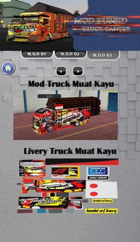 Mod Truck Cabe Ekspress,Mod Truk Wisgit,Mod Canter Oppa Muda Baru,Mod Oppa Muda Update,Mod Canter Mukhlas,Mod Trailer Mask,Mod Truk Box Bussid,Mod Truck Terpal Sumatera,beserta livery mod tersebut ada disini semua.