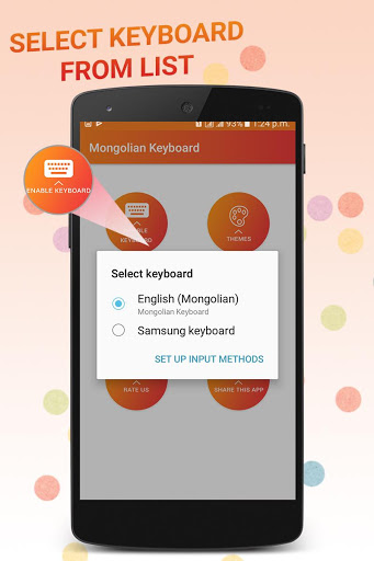Easy Mongolian Keyboard helps you to write in your native language. Mongolian keyboard app is useful for Mongolian speaking peoples around the world.