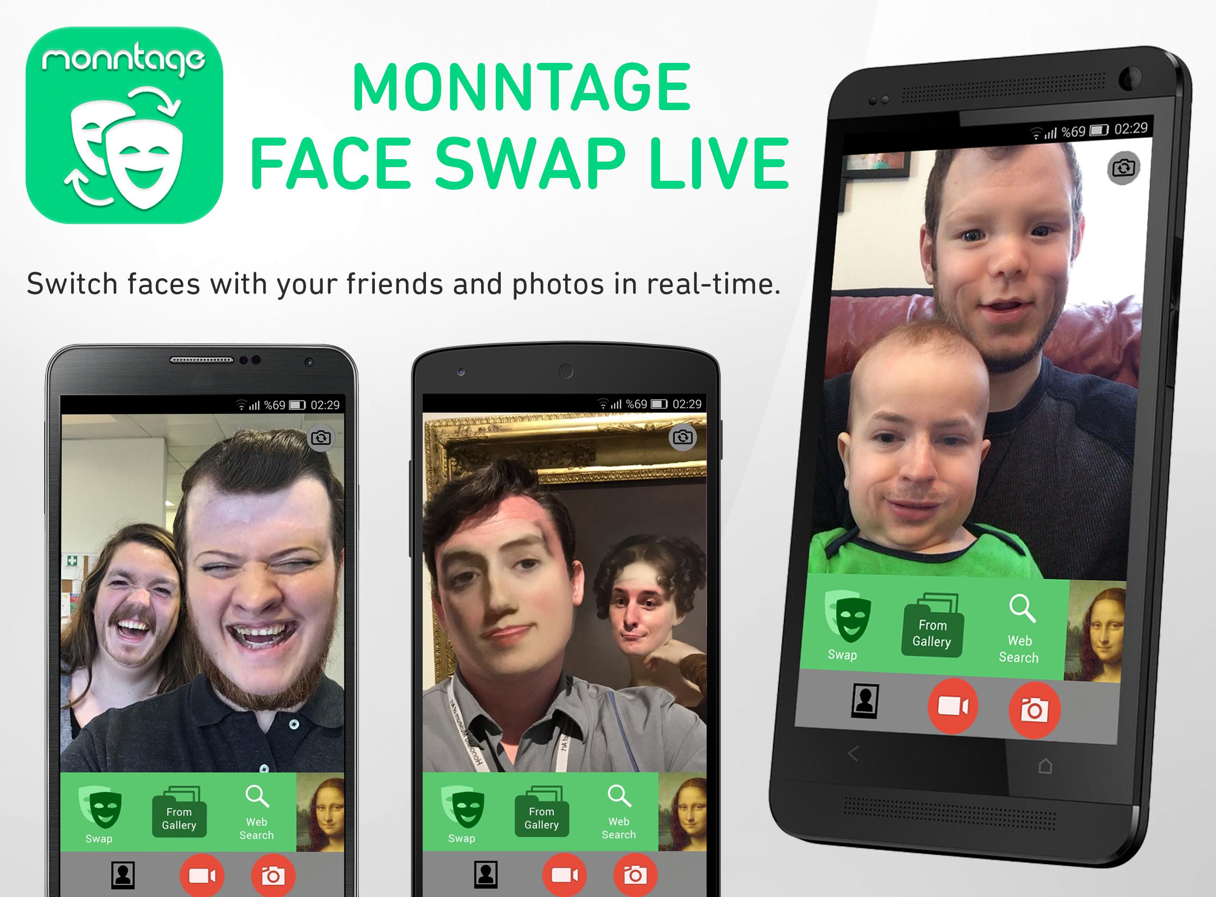 - Monntage: Face Swap Live lets you switch faces with a friend or a photo in real-time.