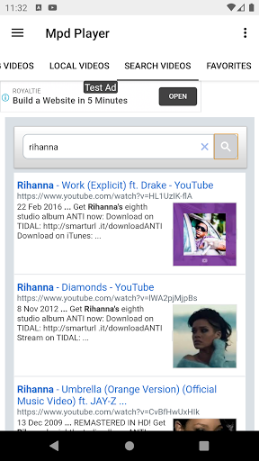 Mpd Video player allows to search internet with google search as provider to find and play videos you like.