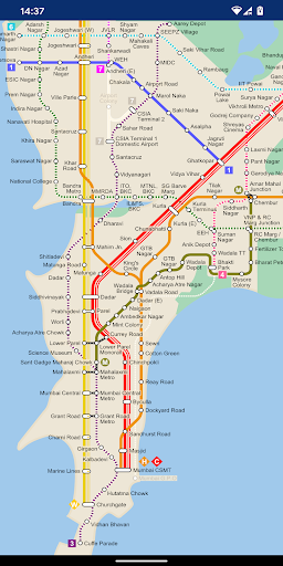 Offline network maps for Mumbai public transport (MMRDA). It includes a complete set of offline maps for metro, monorail, tram, and suburban railway overground.