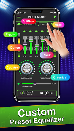 😀 Music Equalizer is an easy-to-use music tuner, to improve sound quality with Bass Booster, Volume booster and 3D Virtualizer effects. Make your music and videos more awesome than ever.This app has various features including five-band EQ to equalize your music, amplifier, bass boost, 3D virtualizer, slider volume & audio control.