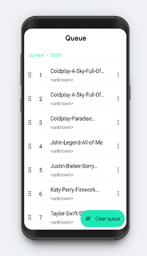 - Play next song automatically. Queue of songs is supported. Add music to the waiting list very easily.