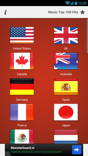 Do you like to discover new Music? Then this free app is a must have The Music top 100 hits app shows you all the bestselling hits around the world. Choose from one of the many countries and listen to a preview of the current top songs. find out whats hot in other countries like USA, UK, France, Canada, Australia, Japan, Germany, Spain, The Netherlands, Portugal, Italy, Mexico, and much more. Want to know whats the top 100 in Japan? No problem, you can find out in no time with just one touch Features: Listen to a preview of all available songs Save songs you like as favorites for easy reference, playback or future download Check out everything about the artists like bios and pictures powered by Last.fm Easily buy songs and albums you like from 7Digital with just one push of a button Switch between the top charts of many countries worldwide Share the songs youve discovered with your friends via twitter facebook or email Pull to refresh; all top charts are updated every hourslideshow of high resolution artist pictures Find similar artists