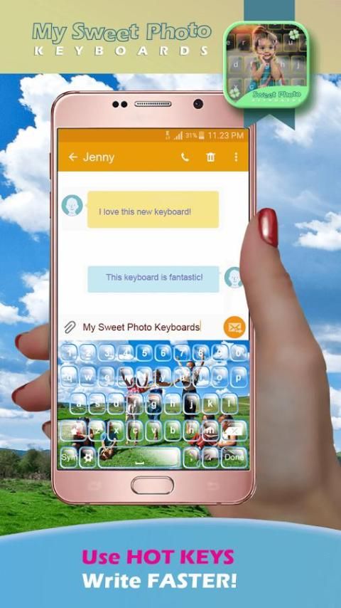 ❖ If you feel the necessity for boosting your creativity, we have something that will help you! Using our new photo app, you can make a wonder of your smart “phone keyboard”. And that’s not all! A wide range of sweet colors and designs and interesting emoticons are expecting you! Enjoy all the photo fun that this free background maker can give you and start arranging your pictures instantly! Download ღ My Sweet Photo Keyboards ღ for Android and make magic out of it! You need only a few clicks and you'll get this cute photo keyboard theme free of charge! Install the best keyboard app and marvel at the fantastic phone appearance!