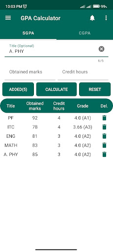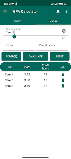 Students can also save their SGPA permanently within GPA Calculator so that they can import it during the calculation of CGPA.