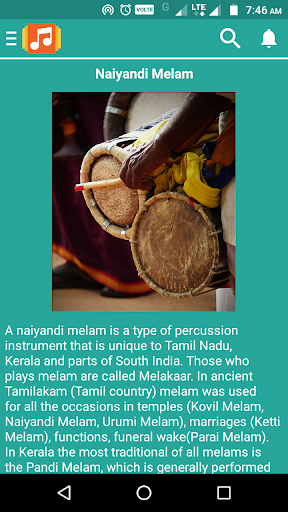 A naiyandi melam is a type of percussion instrument that is unique to Tamil Nadu, Kerala and parts of South India. Those who plays melam are called Melakaar. In ancient Tamilakam (Tamil country) melam was used for all the occasions in temples (Kovil Melam, Naiyandi Melam, Urumi Melam), marriages (Ketti Melam), functions, funeral wake(Parai Melam). In Kerala the most traditional of all melams is the Pandi Melam, which is generally performed outside the temple. Another melam called the Panchari Melam, which is similar to Pandi Melam, but the Panchari Melam is played inside the temple.