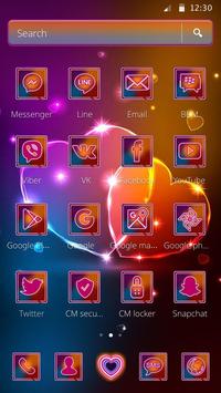 Replace icons - Sparkling neon heart 2D Theme replaces your default icons with exciting bright trendy and stylish icons and keyboard with emoji keyboard.