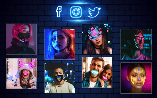 Add “neon mask sticker” to edit images with this picture editing app. This photos editor free has a neon mask camera for selfie pics. Choose your favorite fluorescent light mask in pic editor and try on as many neon mask photo stickers as you like. 'Neon Mask Photo Editor' ? 'Light Effect Camera' for photography is a photo creator that has wonderful neon stickers. Try neon mask sticker app and add cool stickers for your perfect look. This cute pic editor with text on photo is the best “sticker photo editor for girls”. This neon picture editing is perfect for everyone who likes to edit photos & add stickers for pictures. You'll love this sticker editing app with “neon mask photography”. Download neon face mask editor and enjoy cool stickers for free!