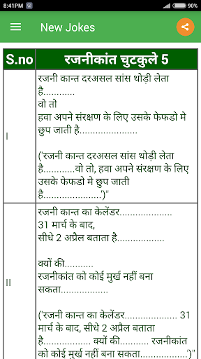 excellent collection of some really funny jokes categorized into different Categories. You can share them right from the app to your whatsapp. You will always have a new joke for you as there is a collection of more than 1000 Jokes. You can even share it on sms.