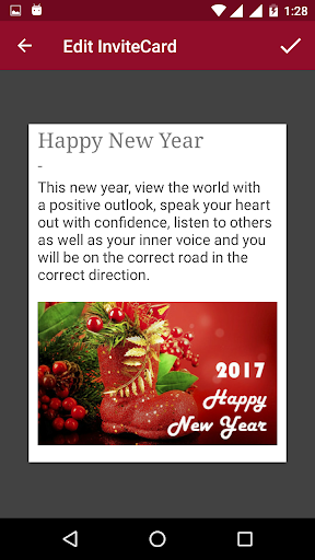 There are many people who are looking for a happy new year greetings on the internet. in this application you can find splendid good greetings for happy new year sayings, happy new year 2017 greetings. so you can share and send new year greetings cards to your loved ones and you can broaden the love and appreciation to them.