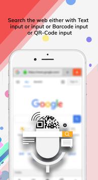 Search the web either with Text input or voice input or Barcode input or QR-Code input.