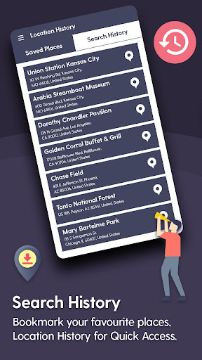 User can save the history of searched places, saved places in offline mode and can see all the history in to the list and share with family and friends through Offline Route Maps. The directions searched will be recorded as history, save details of any place through offline and access it anytime as per your preference, save any directions offline and access to travel without internet connection which helps as a offline route planner or city guide.