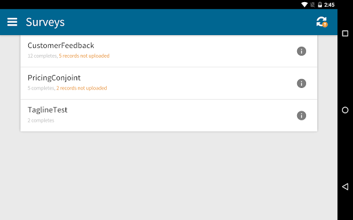 • Downloading surveys and collecting data is easy to do. Begin a survey with just one tap.