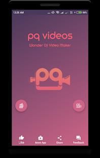 pq videos app helps you to create fast and awesome slideshow with selected photos and music. For creating videos or slideshow from this application you can just select photos form gallery or captured photos from camera, add music track and select stunning animations.