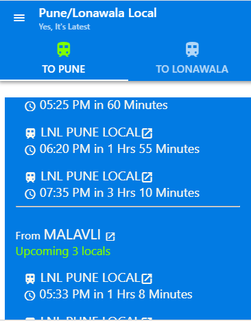 What's New with PUNE LONWALA LOCAL - 2018 5.0.0