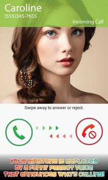 Parrot Announcer will replace you usual boring ringtones with its cute voice announcing caller name and caller number with its cute Call Talker voice.
