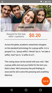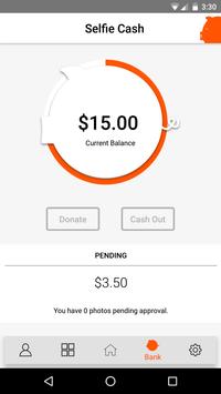 Cash out at $20! Cash out with PayPal or donate selfie cash to charity.