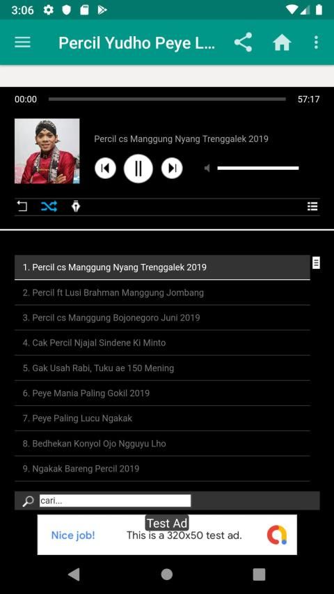 Dengerin dan rungokno lawakan Cak Percil dan Cak Yudho. Bersama sama dengan pelawak lainnya seperti Cak Kunthet, Cak Gareng dan para sinden terkenal seperti Lusi Brahman, Puri Ratna, dan lainnya. Juga bersama dalang-dalang fenomenal seperti Ki Minto, Ki Eko, Ki SUn Gondrong dan lainnya